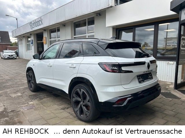 Adaptive Geschwindigkeitsregelanlage (ACC), Airbag Beifahrerseite, Airbag Beifahrerseite abschaltbar, Airbag Fahrerseite, Ambiente-Beleuchtung, Außenausstattung: Esprit Alpine, Außenspiegel elektr. verstell-, heiz- und anklappbar, mit Memory, Außenspiegel schwarz lackiert, Blinkleuchten mit Lauflicht vorn und hinten, Dachantenne im Haifischflossen-Design, Dachreling schwarz, Easy-Park-Assistent, Eco Mode (Fahrmodusschalter), Einparkhilfe vorn, hinten und seitlich mit Rückfahrkamera, Einstiegsbeleuchtung mit Logo Projektionsfunktion, Einstiegsleisten mit Modell-Schriftzug, Elektr. Bremskraftverteilung, Fahrassistenz-System: Abstandswarner, Fahrassistenz-System: Aktiver Notbrems-Assistent mit Fußgängererkennung, Fahrassistenz-System: Ausstiegswarnung, Fahrassistenz-System: Berganfahr-Assistent (HSA), Fahrassistenz-System: Fernlichtassistent, Fahrassistenz-System: Multi-Sense (Fahrmodusschalter), Fahrassistenz-System: Müdigkeitserkennungs-Sensor, Fahrassistenz-System: Querverkehrs-Assistent, Fahrassistenz-System: Sicherheitssystem mit automatischem Notruf (ERA GLONASS / eCall), Fahrassistenz-System: Spurhalteassistent Aktiv, Fahrassistenz-System: Totwinkel-Assistent mit aktivem Lenkeingriff, Fahrassistenz-System: Warnsystem Totwinkel (Blind Spot Warning, BSW), Fensterheber elektrisch vorn + hinten, Geräuschsimulator (Außensound), Geschwindigkeits-Regelanlage (Tempomat) mit Verkehrszeichenerkennung und Geschwindigkeits-Warnanlage, Getriebe Automatik - Multi-Mode (15-Stufen), Heckleuchten LED, Heckleuchten LED mit Moiré-Effekt, Heckscheibe heizbar, Hybrid 147 kW E-Tech (Motor 1,2 Ltr. - 96 kW), Induktionsladeschale für Smartphone, Infotainment-System: OpenR link (12" Touchscreen, Arkamys Auditorium Sound, Navigationssystem mit Google Maps), Innenspiegel mit Abblendautomatik, Innenspiegel rahmenlos, Ionisator zur Luftreinigung, Isofix-Aufnahmen für Kindersitz, Kamerasystem Around View 360°, Karosserie: 5-türig, Keyless Go, Kinderspiegel (zusätzlicher Innenspiegel für den Fond), Klimaautomatik 2-Zonen mit autom. Umluft-Control, Koffer-/Laderaumboden doppelt, Kofferraumdeckel / Heckklappe elektrisch betätigt (öffnen + schliessen, sensorgesteuert), Kombiinstrument digital (12,3 Zoll), Komfort-Kopfstützen vorn, Kopf-Airbag-System hinten, Kopf-Airbag-System vorn, Kopfstützen hinten, Lendenwirbelstütze Sitz vorn links, Lenkrad heizbar, Lenkrad mit Schaltwippen/-tasten, Lenksäule (Lenkrad) höhenverstellbar, Lenksäule (Lenkrad) längsverstellbar, LM-Felgen, Mittelkonsole mit Armlehne und Staufach, Parkbremse elektrisch mit Auto-Hold-Funktion, Pedale Aluminium, Radstand 2667 mm, Reifen-Reparaturkit, Reifendruck-Kontrollsystem (Aktiv), Rücksitzbank geteilt/klappbar (1/3-2/3), Rücksitzbank verschiebbar, Schadstoffarm nach Abgasnorm Euro 6e, Schaltpunktanzeige, Scheinwerfer Full-LED, mit adaptivem Kurvenlicht, Schlechtwetter-Licht, LED-Signatur (Pure Vision), Seitenairbag vorn, Seitenairbag vorn mitte (Center-Airbag), Sitz vorn links elektr. verstellbar (6-fach), Sitz vorn rechts elektr. verstellbar (6-fach), Sitzbezug / Polsterung: Alcantara / Stoff, Sitzheizung vorn, Sonderlackierung Metallic Dezir Rot, Sonnenblenden mit Spiegel (beleuchtet), USB-Anschlüsse (Typ C) Mittelkonsole hinten, USB-Anschlüsse (Typ C) Mittelkonsole vorn, Verglasung hinten abgedunkelt (Privacy Glass), Warnanlage für Sicherheitsgurte